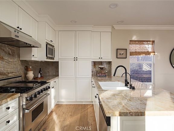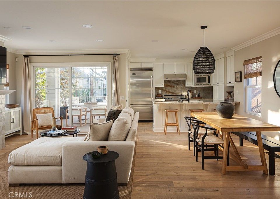Located on the coveted Flower Streets of Corona del Mar, this stunning home sits on the ocean side of PCH, perfectly positioned in the heart of the Village. Rare in design, this rear unit lives like a front home, offering both privacy and space with its wide side alley, attached two-car garage, and two generous decks. Inside, three bedrooms and three en-suite baths blend modern luxury with coastal charm. The primary suite features a cozy fireplace, spa-inspired bath, and a private rooftop deck with sweeping views—your own sanctuary above the Village. Light pours through every space, accentuating the French oak floors and the bright, open-concept living area. The crisp white kitchen flows effortlessly into the great room and onto a lushly landscaped deck—complete with retractable cantilevers that transform it into an all-season entertaining retreat. No detail has been overlooked, with high-end finishes throughout, including Viking appliances and Carrera marble accents. Whether as your full-time residence or a refined coastal escape, this turn-key home captures the quintessential CDM lifestyle—vibrant, elegant, and distinctly inviting.