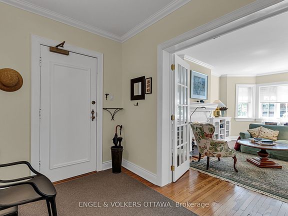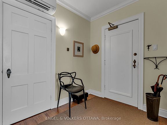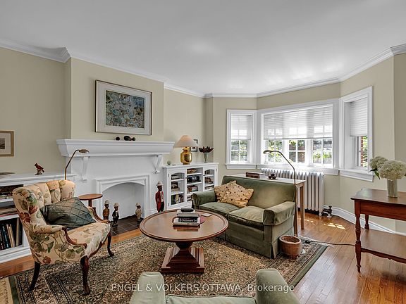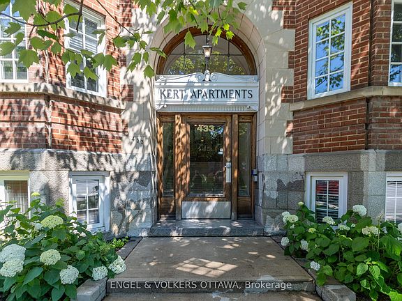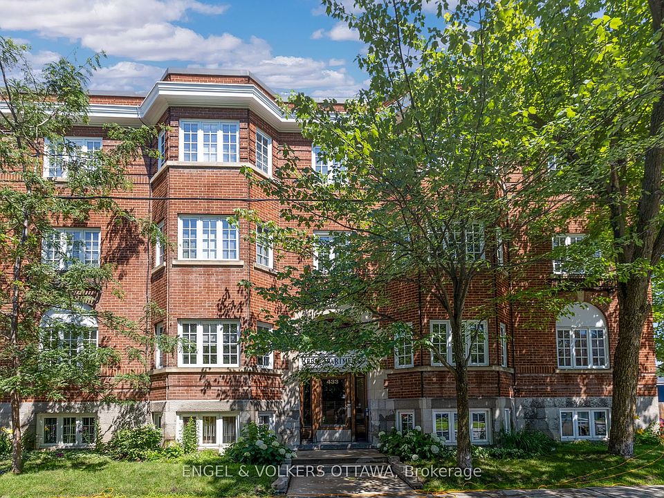 Welcome to 433 Besserer Street #2, built in 1923 by prolific Ottawa architect W.E. Noffke, where timeless character meets everyday comfort in the heart of Sandy Hill. This charming and meticulously maintained apartment, located in an adult-oriented building overlooking tree-lined Besserer St offers a spacious layout - perfect for professionals and down-sizers. Step inside the foyer to find hardwood floors, crown moulding, and French doors leading to a generous living space filled with natural light from the south-facing bay window. A decorative fireplace mantel, custom built-ins, and a seamless connection to the dining area create an inviting setting for both relaxing and entertaining. The dining room comfortably fits a full dining set and features a large picture window and classic brass chandelier. The kitchen pairs vintage charm with modern functionality, offering white shaker-style cabinetry, dark laminate counters, a full appliance package, and in-unit laundry. Checkerboard tile flooring and a raised breakfast ledge add extra style and convenience, making you feel like you're in New York City. Two well-proportioned bedrooms provide flexibility for sleeping, working, or hobbies, with the rear bedroom offering a private balcony - perfect for a private office or studio. The refreshed bathroom features a tub/shower combo, pedestal sink, and neutral finishes. 1 parking space at the rear of the building (rare), 1 storage locker down the hall, radiator heating, and hardwood floors throughout complete this comfortable and character-filled home. Enjoy the best of city living in this tree-lined residential enclave with mostly single-family homes, just minutes from the University of Ottawa, Strathcona Park, and the vast amenities of the ByWard Market. With easy access to transit, cycling paths, and Ottawa's cultural attractions, this vibrant neighbourhood offers a perfect blend of urban convenience and community charm.