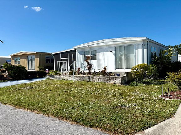 Affordable paradise awaits at 433 Bimini, a 2 bedroom, 2 bath charming and sunlit home tucked away in the quiet rear section of the park. Just a short stroll from Curry Creek, immerse yourself in the natural beauty with saltwater species for fishing, kayak storage and launch, and a golf cage right down the street. You can sit back and watch for manatees and diverse bird life that congregate. Around the corner, one of three heated pools and the clubhouse offer even more ways to relax and connect. It's truly an ideal location. This crisp white home glows in the Florida sunshine, with a carport that leads into a screened-in room equipped with shades for sun protection and added privacy. A spacious shed provides extra storage and functionality, housing a second refrigerator, washer/dryer, workbench, and shelving for beach gear, golf clubs, and more. The kitchen is thoughtfully arranged and well equipped with butcher block countertops, beadboard walls, a double sink, three utility closets, and all the appliances you need to get started. An island with stools adds extra workspace and casual seating. The dining room features a lovely table for four to six and a built-in cabinet with glass doors above and storage below. The living room is furnished with two comfortable recliners and a sofa that can be arranged to suit your style and decorated in a soft blue to compliment any decor. The home boasts laminate flooring throughout, most newer windows are double pane and there is a 2024 brand new TPO roof. Both bathrooms include a spacious walk-in shower, a large vanity, and double wall cabinets including towels and linens. The guest bedroom currently holds a full-size bed but room for a queen, along with a TV and walk-in closet. The master suite offers a queen bed and dresser, with space to accommodate a king bed and additional furnishings. The ensuite bath features a walk-in closet, double linen closets, a large vanity with room to expand, and a private bath with another walk-in shower and flush. Once outside of the living room the front deck offers endless possibilities-recreate the screened-in lanai that was touched by a previous hurricane and created an open deck/patio. Enjoy it with an umbrella and seating, or add a railing to define the space. This turnkey home comes fully equipped with all essential linens, towels, furnishings and kitchen wares, making it ready for its next chapter offering a stress-free start to living in paradise. And, at this fantastic price, the timing couldn't be better. There is no comparison to this 55+ Bay Indies Resort Community and of the best buys you will come across. Just 2 miles from downtown Venice with restaurants, shopping, a fishing pier and plenty of cultural concerts and art. It is a haven of activities with tennis, pickleball, bocce, shuffleboard, 3 heated pools, spas, 3 clubhouses, and an array of over 300 clubs to suit every interest from cards to trivia and much more. 3 nearby airports for family, and a casino in Tampa and the Tiger Woods Pop Stroke 2 course putting greens in Sarasota are a must. All listing information given to us is considered appropriate and reliable but should be independently verified through personal inspection by appropriate professionals. Home must be maintained to the Community Prospectus. The lot rent is determined by the Community office and covers all amenities offered including property taxes and lawn maintenance.