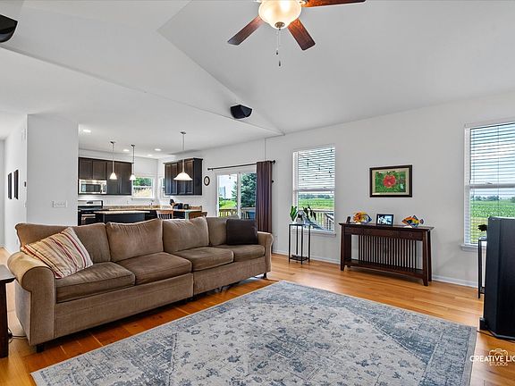 Wow! Just like new! Excellent condition! One level living at it's finest in Heron Creek! Breathtaking views for miles of open fields! Open floor plan! Large living room with cathedral ceilings, ceiling fan and plenty of natural light! Upgraded eat-in kitchen with 42" custom cabinetry, breakfast bar island with pendant lighting, granite countertops, stainless steel appliances and separate eating area with sliding door to the custom deck and endless views! Separate dining area perfect for entertaining! Convenient 1st floor laundry! Spacious master bedroom with tray ceiling, walk-in closet and private bath with dual sink vanity, walk-in shower and separate soaker tub! Gracious size secondary bedrooms! Huge basement with bath rough-in awaits your finishing touches! Neutral throughout! New water softener! 3 car garage! Perfect 10! Move in ready!