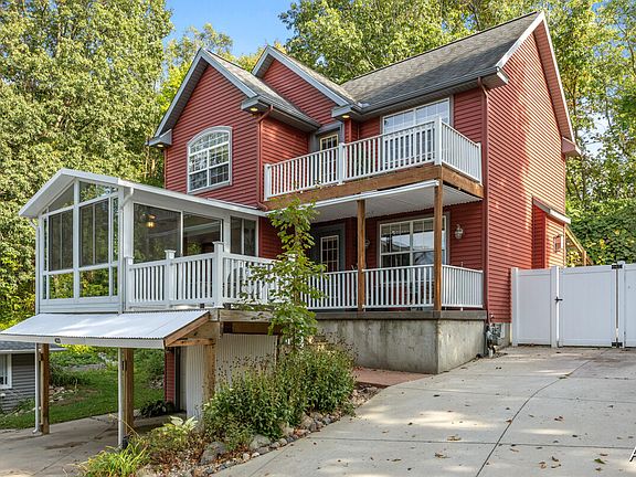 Welcome Home to Green Lake Living! This beautiful year-round residence offers comfort, style, and stunning views from multiple rooms. Comes with extra side lot making it .12 acres. Public launch only 250ft away. New sun room off kitchen, covered back deck, privacy fencing, small landscape pond- all perfect for relaxing & entertaining. Living room with gas fireplace and spacious kitchen with maple cabinetry, granite countertops, a large center island, solid surface flooring. Main floor laundry/full bath. Upper features 3 bedrooms and a full bath; balcony; primary with large windows framing peaceful lake views. Lower with large family room and abundant storage space, plus bonus flex room. Home is equipped with a backup power source. The garage is currently set up as a man-cave, but can easily be converted back with a new motor/track. Newer furnace/AC and water heater(2022). Large storage shed. Call for a private showing!