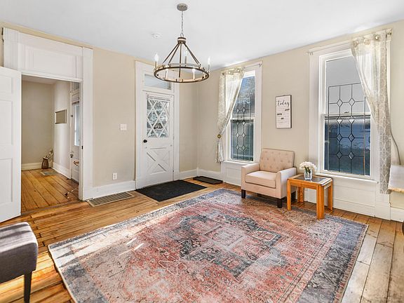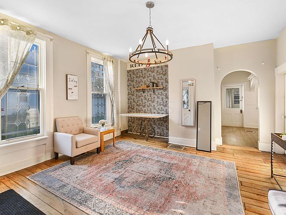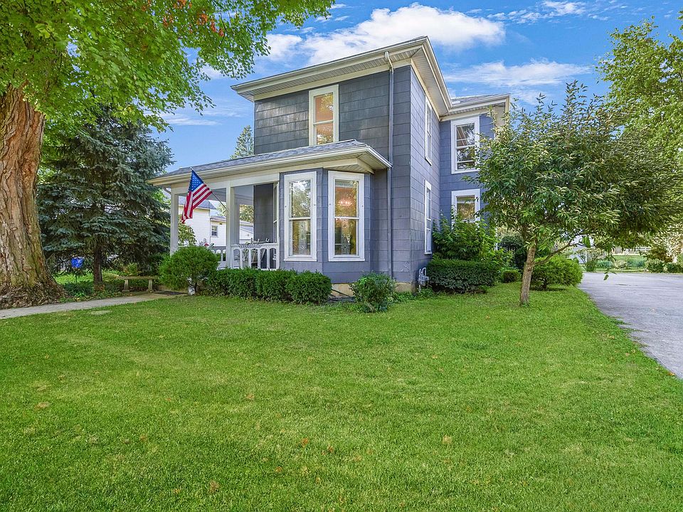 Parklike backyard with gazebo and shed. Updated roof, electrical, paint and high efficient furnace. Nearly half acre lot with a huge concrete driveway (roughly 6 car capacity). Intended for single family sale but perfect location for several different types of businesses. Hardwood floors in most rooms, high ceilings, ornate trim as you might expect in an older charming home. USDA financing geographic eligibility