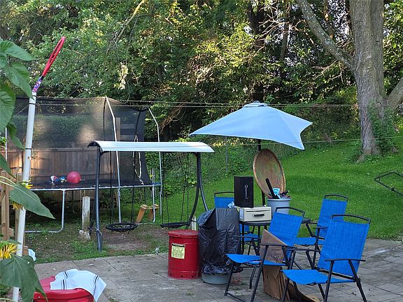 Tree lined streetHardwood floorsNewer windowsBrick patio spaceDetached two car garage