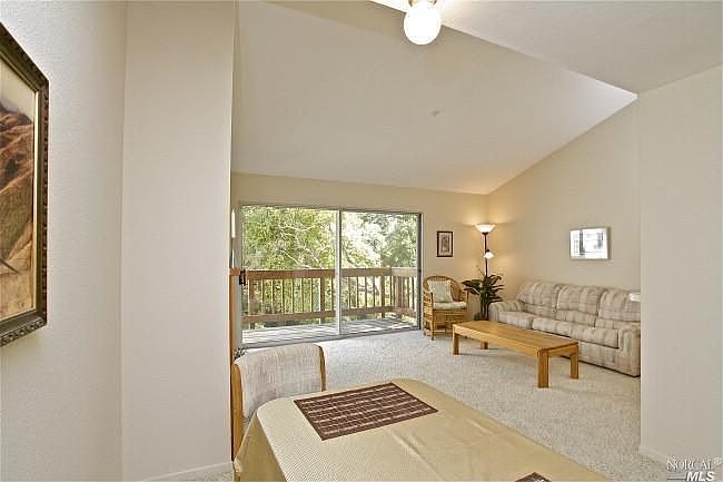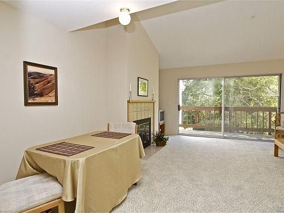 Move-in ready top floor unit with new carpet & freshly painted, in a quiet location overlooking trees and creek. Vaulted ceilings in the living room opening out to spacious deck. Fireplace in Living Room. Kitchen has bar/pass to living room. Laundry room in unit. One assigned covered parking spot + spaces for guest. Easy access to Hwy 101, yet quiet & private. Close to Paradise Market & Bocca Pizzaria.