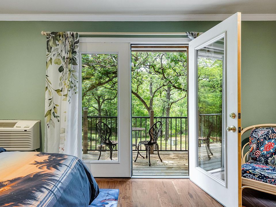 Towering treesBuilt in murphy bedDouble bunk bedsMaster bedroom downstairsSpectacular viewsPatio balcony or groundsSurrounded by nature