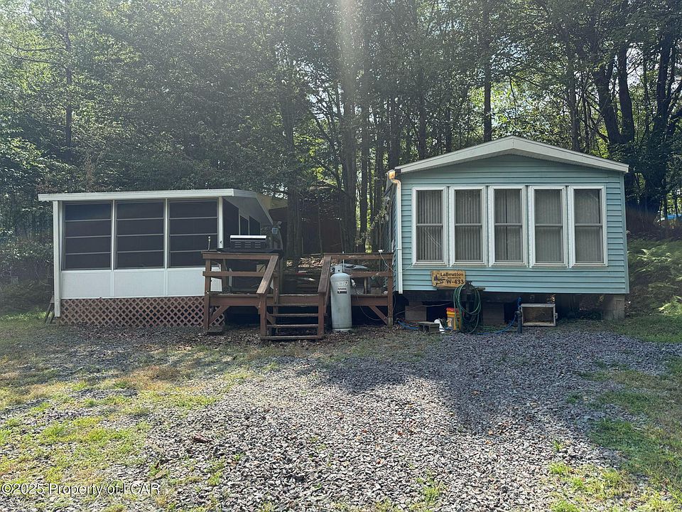 Welcome to Eagle Lake Community! This four-season, full-time residential and recreational community spans over 1,000 acres and is ranked among the top 100 in the country. Enjoy peace of mind in a 24-hour gated security community with amenities including a clubhouse, fitness center, mini golf, lake, beaches, playground, pool, tennis and basketball courts, and more.Located in the Wildlife section Lot WL5-433 features a well-maintained 1992 Homesteader RV 2 Bedroom & 1 bath, with a three-season screened room. The property is being sold fully furnished with TVs, tables, chairs, grill, appliances (as-is), shed contents, and more. Property line extends to the green fence. all appliances being sold in AS Is condition.