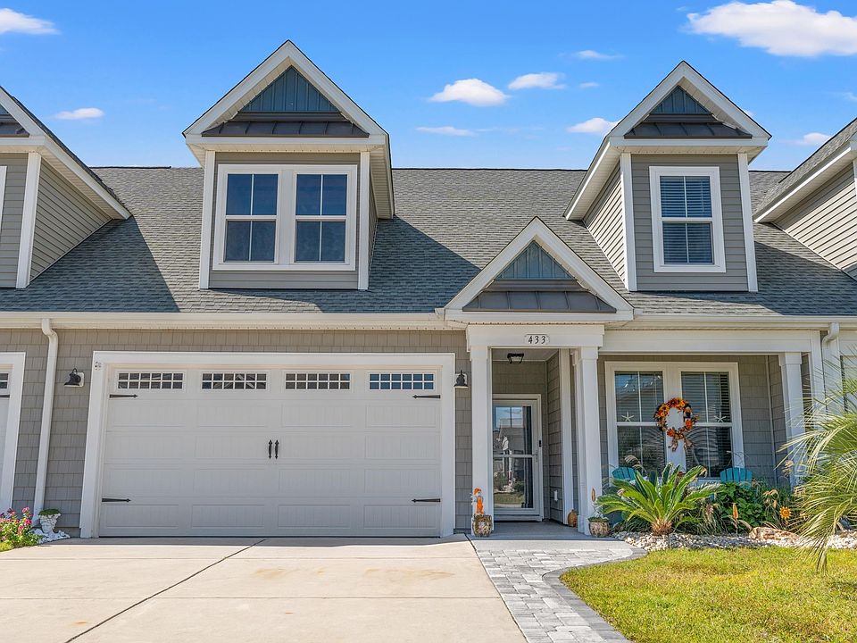 Welcome to the good life at Bridgewater! Location is key, and this beautiful coastal townhome offers the perfect blend of comfort, convenience, and community living. With three bedrooms and three full baths, this move-in ready home is designed for both everyday living and entertaining. Step inside to an open-concept floor plan combining the kitchen, living, and dining areas, creating an inviting space for family and friends. The primary suite is located on the first floor and features an oversized bedroom with a tray ceiling, ensuite bath with double sinks, and a walk-in shower. Also on the main level, you’ll find a second bedroom, a full bath, a convenient laundry room off the kitchen, and a spacious two-car garage. Upstairs, a versatile loft bedroom and third full bath provide a private retreat for guests. The second floor also offers a generous walk-in storage area, perfect for keeping everything organized. With its attractive curb appeal, this townhome is sure to impress from the moment you arrive. Bridgewater is more than just a neighborhood—it’s a lifestyle. The community offers a resort-style pool, fitness center, clubhouse, pickleball courts, dog parks, and a garden, along with a firepit for evenings spent with friends and neighbors. With a social director and a full calendar of monthly events, you’ll always find something fun and engaging to be part of. Additional upgrades make this home stand out even more. The kitchen boasts beautiful granite countertops, adding both style and durability. Outside, the front walkway features an epoxy finish for easy maintenance, and the landscape beds are accented with rock for a clean, polished look. The back patio offers a polished look with a gray stone installation that goes beyond what the builder offers, as a decorative stamped coating. Don’t miss this opportunity to make Bridgewater your home. Schedule your showing today before this townhome is under contract!