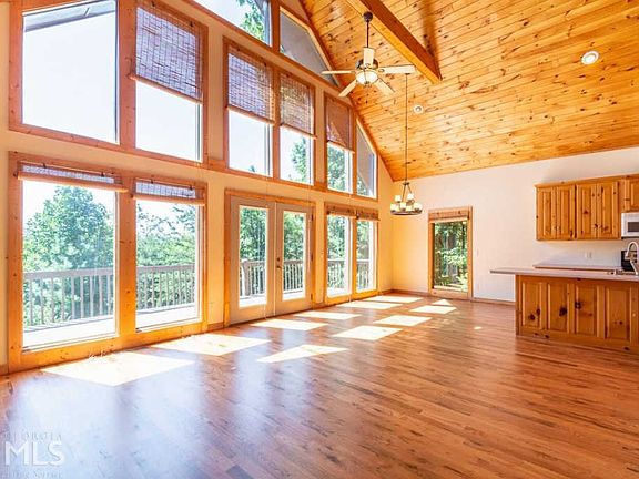 STUNNING LOG-SIDING HOME W/ PERFECT NORTHEAST GA LOCATION..Welcome home to this open & airy cabin within minutes of downtown Cleveland, Helen, & Clarkesville for all your retail, dining, & entertainment needs! BONUS: hiking trails, rivers, vineyards, & much more outdoor activities ALL around you! Greeted by vaulted tongue-n-groove ceilings, stacked stone wood burning FP, NEWLY finished hardwood floors, & floor-to-ceiling windows to enjoy the seasonal mtn views from the living room! SPACIOUS kitchen w/ plenty of cabinets & great island for extra seating opens to dining room. Step on the back deck for grilling out! Master on main features private en-suite. HUGE loft/BR w/ 2nd full bath PLUS more mtn views! FULL FIN terrace level w/ bonus room, BR, & 3rd bath!