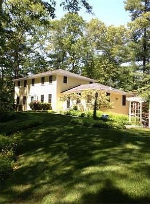 This updated Colonial features hardwood flooring throughout, front to back living room with beautiful wood detail mantled fireplace & built-in bookcases, EIN Kitchen with cork floor, rain forest green marble counters, SS appliances, beamed ceiling open to large family room with cathedral ceilings and wood stove, wired w/ built-in sound system. French doors lead to screened porch with skylights and a cedar deck & step down to a lovely patio in private backyard w/ perennial gardens, 2-car garage. Neighborhood Description set back from rural country road bordering conservation area yet convenient to Rt. 95 and Rt. 1