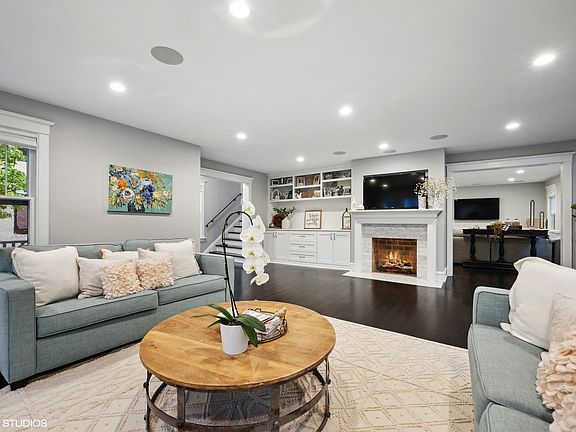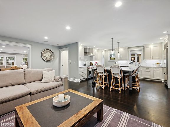 433 Maple is the definition of a turn-key home! This 5 bedroom, 3.1 bath home has been thoughtfully updated for today's buyer. The first floor features gleaming hardwood floors and an open concept that is hard to find in older homes on the North Shore. The living room is oversized and has a wood-burning fireplace, built-in cabinetry, and windows on three sides overlooking tree-lined Maple Avenue. The open kitchen features a huge island with seating for 5, top-of-the-line appliances including a Sub Zero refrigerator, 48" Wolf range, Bosch dishwasher, wine fridge, Quartz countertops, and a reach-in pantry. The kitchen opens to the large family room - perfect for keeping an eye on things while working in the kitchen. The well-proportioned dining room has a perfect view of the new (2023) Trex deck and landscaped backyard. The first floor has speakers throughout both living areas and two built-in subwoofers. The back entrance opens to a mudroom and half bath. The second floor is a dream...a large primary suite with a spa-like bath, heated floors and a well-organized closet. Three more bedrooms and a full bath with double sinks, a separate bath/shower area and heated floors. The third floor features another bedroom/office, a full bath plus attic storage. The recently renovated basement (2022) is spacious with LVP flooring and built-in cabinets galore! The outdoor spaces are perfect, too, offering a brick patio and driveway and a sunny south-facing backyard. Do not miss seeing this house!