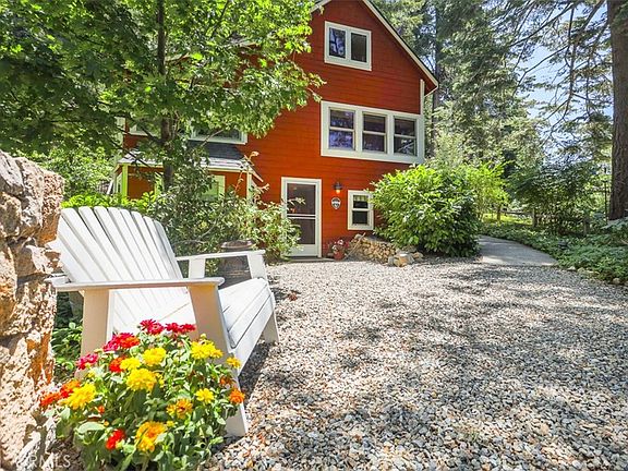 Accepted Offer. Back-Up Offers only. A secluded vintage retreat, loaded with charm, surrounded by lush landscaping and bordered by acres of coveted Dogwood Blue Jay Canyon Greenbelt, has been lovingly restored. Situated under towering trees, surrounded by open spaces, cool breezes bring constant relief to warm summer days. Tucked into the landscaped perimeter are idyllic spots where one can sit, enjoy nature's beauty and read, relax or listen to the bluejays and woodpeckers. Peeks of the lake are visible from the deck which is nestled amongst the pines and cedars. Built in 1929, the cabin's interiors reflect a casual elegance and a warm rustic ambiance. Forest views are framed by large windows throughout! One enters the main floor (an "almost-level" entry) into a sweet entry hall. A wood beamed living room features an original stone fireplace, light hardwood floors and comfy furnishings. In the spacious dining room, a huge wooden dining table stands beside walls of windows with views of an endearing dogwood tree and distant hills beyond. The deck, built around old stone walls, is a perfect spot for entertaining! At night, strategically placed lights create a magical backdrop for stargazing. The kitchen is adjacent to the dining room with all conveniences. The media room includes a flat screen TV and stunning forest views. The original attic, now an enchanting all white primary suite, has a pitched ceiling, beams and fills the entire top story. There's easy access to the beadboard bathroom with claw foot tub and shower. Downstairs are two inviting guest bedrooms with French doors and a guest bathroom. A center hall connects the bedrooms, laundry area and two storage rooms. Multiple car parking adjacent and located on a plowed and maintained road. Although secluded, this retreat is minutes away from Lake Arrowhead and the Arrowhead Village. Upon purchase, selected furnishings will remain for the new owner! Come by and discover this beautiful mountain cabin, feel the serenity of its surroundings, the warmth of its interiors and imagine the joy it'll bring its new owners!