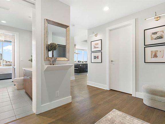 Experience elevated downtown living in this stunning 16th-floor residence at the iconic Arriva Tower. Spanning 1,367 sq. ft., this bright and airy corner unit offers 2 bedrooms, 2 bathrooms, and uninterrupted east facing views through floor to ceiling windows that capture the morning light and stretch across the city skyline and Bow River valley. The orientation provides an incredible sense of privacy and tranquility, paired with sweeping, ever changing vistas. The contemporary kitchen is a showpiece, featuring a full Miele appliance package, gas cooktop, sleek cabinetry, and an expansive island that anchors the open concept layout. Stunning engineered hardwood floors flow throughout the main living spaces, creating warmth and sophistication against the modern design. The spacious living and dining areas are perfect for entertaining or simply relaxing while taking in the panoramic views. The primary suite is a true retreat, complete with a walk-through closet and spa-inspired ensuite featuring a deep soaker tub and glass-enclosed shower. A generous second bedroom and full bathroom offer flexibility for guests or a home office. This home includes two titled underground parking stalls, an assigned storage locker, central air conditioning, and high speed elevators for quick, private access. Known for its luxury living and exceptional service, the Arriva Tower offers a full time concierge who also accepts parcel deliveries, a convenient bonus for residents. Additional building features include 24-hour security, two guest suites, an owner’s lounge and event room, and a beautifully maintained fourth floor courtyard terrace with BBQ area for outdoor relaxation. Located in the vibrant Beltline, steps from the Stampede Grounds, future Event Centre, C-Train access, and Calgary’s best restaurants and entertainment.