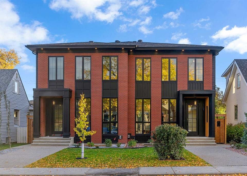 Welcome to the heart of Mount Pleasant, one of Calgary’s most sought-after inner city neighbourhoods. This newly built semi detached home combines modern design with practical family living, offering over 2,800 sq ft of beautifully finished space including a legal suite. Thoughtfully designed for flexibility, it’s ideal for multi generational living or rental income without compromise on comfort or style. The open concept main level features large windows that fill the home with natural light. The kitchen showcases KitchenAid appliances, sleek and stylish custom cabinetry, quartz countertops, and a stunning full slab backsplash that creates a clean, seamless look. A large island anchors the space, perfect for casual meals or conversation. The adjoining dining and living areas flow naturally toward the deck, creating an inviting space for both family time and entertaining. A fully fenced, landscaped yard with a composite deck offers a private, low maintenance outdoor retreat. Upstairs, the primary suite is a true escape, featuring a large walk in closet and a spa inspired ensuite with Italian tile, a steam shower, freestanding tub, and dual vanities. Italian tile continues through all bathrooms, adding a consistent, upscale feel. Two additional bedrooms, a full bath, and a laundry room complete the level, designed with both privacy and function in mind. The legal two bedroom basement suite is self contained with its own entrance, full kitchen, laundry, and bath, ideal for extended family or generating additional income. The design and sound separation ensure comfort for both households. Additional features include smart toilets, engineered hardwood on the main and upper floors, durable LVP in the basement, and a double detached garage offering secure parking and extra storage. The exterior blends red brick, and modern accents for timeless curb appeal. Mount Pleasant continues to be one of Calgary’s most desirable communities, known for its mature tree lined streets, walkability, and welcoming feel. Residents enjoy easy access to Confederation Park, the community pool and sports facilities, as well as cafes and boutiques along 4th Street NW. Close proximity to SAIT, Kensington, and downtown makes daily life convenient and connected. A home that delivers quality construction, flexible living, and a location that will always be in demand. Move in ready. Photos are from the other side of the duplex and are provided for reference only. Finishes, layout, and measurements may vary slightly.