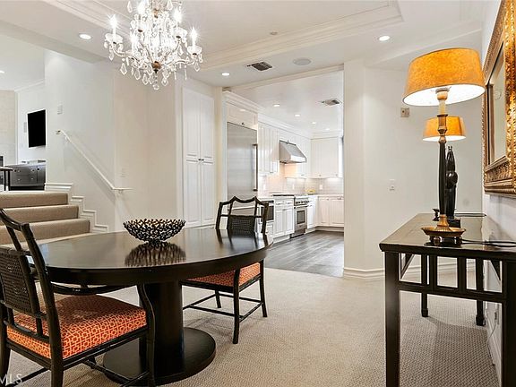 Welcome to this turn-key two-bedroom two-bathroom home in the heart of Beverly Hills that is stylish and perfect for entertaining. Elevator to the second floor brings you to a charming courtyard that leads to a private newly-painted corner residence with plentiful natural light, custom finishes, and graceful living spaces. Split-level floor plan provides a wonderful flow with bedrooms on opposite sides of the residence. Eat-in kitchen has been fully upgraded with stainless steel Thermador appliances, a separate beverage/winefridge, white spacious cabinets and upgraded wood flooring. The dining room is on the main floor in an open space. Walk upstairs to an open living room with entertainment center, wet bar, balcony and enclosed Miele washer/dryer. Primary suite is en-suite with full bathroom including heated marble floors, Waterworks fixtures and a walk-in closet. Second bedroom downstairs is bright with full bath. Additional amenities include two side-by-side garage parking spaces with controlled secured access. HOA dues are reasonable and include earthquake insurance and plenty of secured guest parking. Walking distance to both Beverly Hills and West Hollywood upscale shops and restaurants, Sunday's BH Farmers' Market. Bristol Farms and Ralphs, Cedars Sinai Medical Center and the Four Seasons Hotel. Located in the prestigious Beverly Hills School District.