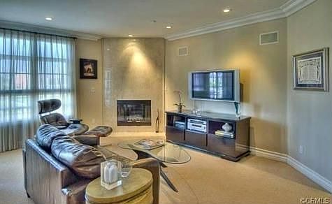 Light,bright front facing end unit in great Beverly Hills location. Charming courtyard leads to private corner unit. Spacious eat in kitchen with stainless steel appliances, granite counters and ample cabinets. Step up living room with fireplace, built ins, balcony and views of mountains and city. Large dining room for great entertainment. Master bedroom with views and good size master bath. Second bedroom also bright and second full bath. Side by side parking.