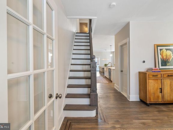Stunning three-story Roxborough home, thoughtfully renovated from top to bottom within the last 10 years. A designer space flooded with natural light from southwest-facing windows. Enter through the large front porch to discover 9-foot ceilings, original oak floors with walnut ribbon detail, and historic charm including oversized 5-foot windows and original wooden staircase. A foyer with French door separates the living room from the elements in the wintertime. The brand new first floor full bath features Porcelanosa finishes including a walk-in rainshower and gorgeous mosaic tile floor. The open concept gourmet kitchen and dining room is a home chef's delight with KitchenAid appliances, gas range, and reverse osmosis drinking water tap. Entertain with ease at the beautiful island with marble and walnut countertops. Custom walnut shelving with integrated lighting and soft-close cabinetry were all custom built for the space. Convenient first-floor mudroom with laundry, space for a drop zone, and storage closet on the back of the house. The paver patio is partially covered, and the garden has both lawn and mature perennial plantings. Behind the home there is an oversized garage to fit a car and storage, plus additional parallel parking space in front of the garage. Two private parking spaces are a rarity in the Roxborough neighborhood! On the second floor are two spacious bedrooms. The primary suite has an extra-large walk-in closet and brand new oak floors. There is also a luxurious full bath with natural stone and porcelain tile, designer fixtures, custom double vanity, soaking tub, and walk-in shower. The flexible third floor offers a third bedroom and bonus room, perfect for home office or recreation space. Convenient amenities include Nest thermostat, Blink security system, dimmable lights, and energy-efficient appliances. The roof and window flashing redone in 2021. All major systems have been professionally updated with permits for electrical, plumbing, and forced air heating and cooling, ensuring modern comfort and peace of mind in this character-rich, move-in ready home. Prime walkable location, minutes from Roxborough's cafes, breweries, restaurants, and dog park.