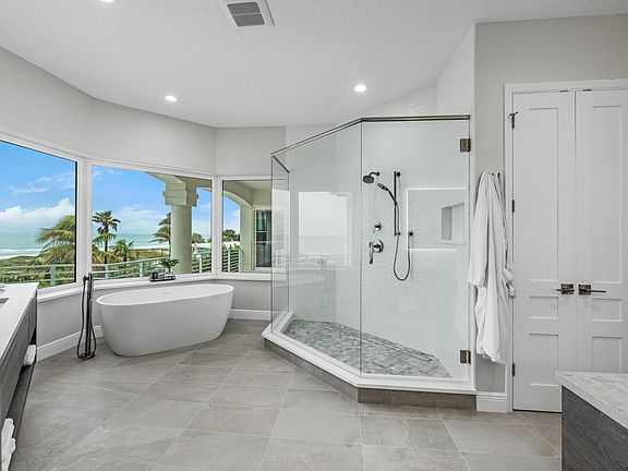 Situated steps away from a private beach, this property offers the unique opportunity to witness sea turtles and rocket launches, creating a truly extraordinary experience.