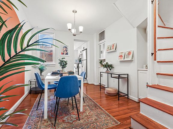 This historic 2-bedroom, 1-bathroom 1870s rowhouse has been fully updated with a walk-in glass shower, washer/dryer, airy sunroom with classic arcade gaming console, string-lit backyard, dedicated office space, wood flooring throughout, and a romantic, exposed-brick-and-beam 3rd floor loft.