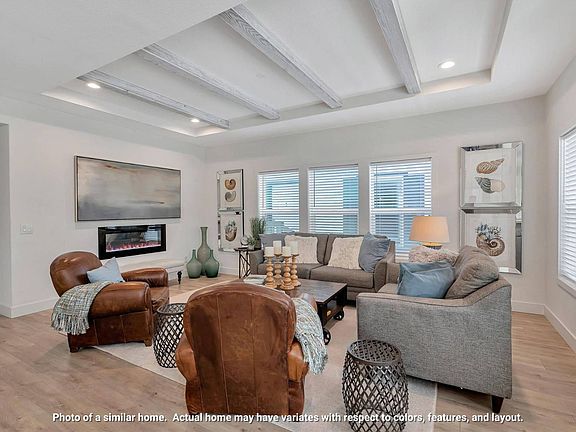 Located in the highly sought-after 55+ community of Sunset Estates: a brand new 3 bedroom, 3 bathroom home designed with both elegance and comfort in mind. Step inside to discover a thoughtfully crafted layout featuring two master suites, a recessed ceiling with exposed beams, a centrally located laundry room, and abundant storage throughout. The gourmet kitchen is the heart of the home, overlooking the living area for effortless entertaining. It showcases a striking island with column supports, stainless steel appliances, durable cabinetry, and quartz countertops. Retreat to the primary master suite, complete with dual sinks, a spacious walk-in shower, and a large walk-in closet. The second master suite also offers its own walk-in closet and private bathroom, making it ideal for guests or multi-generational living. Call today for more information! This is a manufactured home on leased land (not real estate); the land lease is $2,150 per month. 2025 Clayton Serial #: SAC040227CAABAC HCD #: DL1164796 *Images shown are of a similar home. Actual home may vary in color schemes, features, dimensions, and layout. *List price excludes closing costs & escrow fees. *All information provided is deemed reliable, but is not guaranteed.