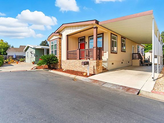 Discover your dream home in Sunset Estates, Mountain View's premier 55+ community! This spacious 3-bedroom, 2-bath home with a den is designed for comfort and style. A brand-new roof (completed this month) and new air conditioner provide peace of mind, while a cozy gas fireplace with mantel and tile surround adds warmth to the open living area with tray ceilings. The chef's kitchen features granite counters, built-in oven with range top, dishwasher, refrigerator, abundant cabinets, a sunny breakfast room, and a formal dining room with a built-in hutch-perfect for entertaining. The custom Skyline Pebble Beach floor plan also includes a large backyard, storage shed, and space for a garden. The master suite is a retreat with a walk-in closet and spa-like bath featuring both a soaking tub and separate shower. Two additional spacious bedrooms and a full utility room with washer, dryer, cabinets, and outdoor access add convenience. Gentle bay breezes, stacked stone exterior accents, and a welcoming front porch complete this move-in ready home. Lot rent is $1,500/month, and park approval is required. Call today for more information! This is a manufactured home on leased land (not real estate); the land lease is $1,500 per month. 2009 Skyline Serial #: EK700261XA/B HCD #: DL1164796 *List price excludes closing costs & escrow fees. *All information provided is deemed reliable, but is not guaranteed.