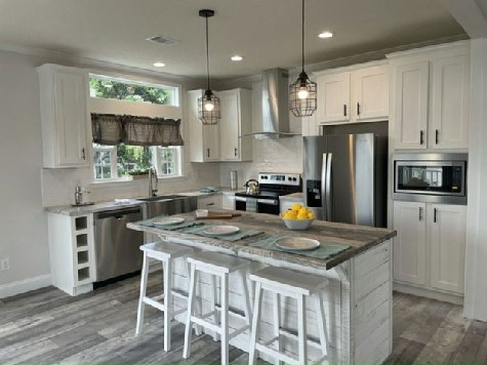 Welcome to Heritage Plantation an active 55+ community. Step inside this beautiful 2023 home with a wonderful view of the lush, community garden! And it's on a corner site! The Spring Hill has so much style! This open plan boasts beamed ceilings, crown moldings, woodgrain luxury vinyl flooring throughout, island kitchen with two-toned cabinets, built-in electric fireplace, shiplap accents, and much more! Enjoy the view from the huge kitchen window over your apron sink. Stainless steel appliances. Glass and stainless vent hood. Recessed and pendant lighting. Your dining room has sliding glass access to the front porch. Transom windows bring in light without sacrificing privacy. The main bedroom has a lovely tray ceiling, walk-in closet, ceramic tile and glass shower and dual sink vanity. You'll appreciate the enormous laundry room with back door to the storage shed and extended carport. Conveniently situated near shopping, dining, major highway I-95 you'll have everything you need just minutes away. Whether you're looking for relaxation or recreation, this community has it all. Call today to schedule a tour!