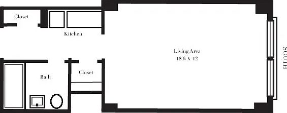 Beautiful straight-line Studio with large 12 X 18.6 living area, contemporary kitchen, high, beamed ceilings, hardwood floors, custom sound proof windows (TOTAL quiet inside!), two custom closets, bath and sunny, South exposure. 433 is the Prewar Jewel of the Hudson Yards and offers 24 hour doorman, live in Super, full maintenance staff, large central laundry, laundry and dry clean drop off service, package room, BuildingLink system, storage and bike rooms available for rent. The building is pet friendly, allows unlimited sublet after 3 years, and is located by the A, C, E, No. 7, LIRR, Hudson Yards, Manhattan West, new Whole Foods, restaurants, parks and more.