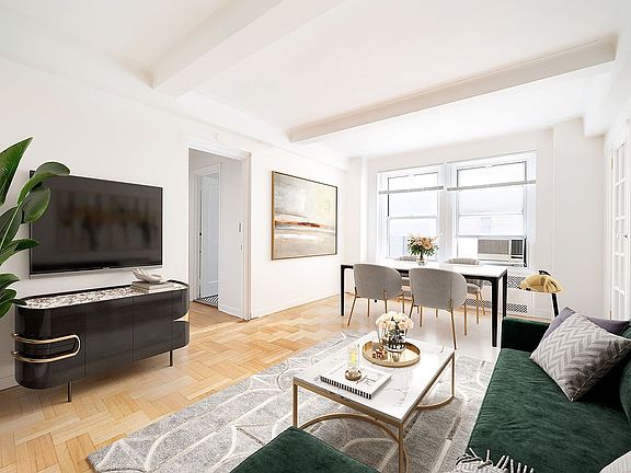 Sunny corner one bedroom apartment with Open Views in the Prewar Jewel of the Hudson Yards / Manhattan West area. This home has an entry hall with closet that opens to the East facing Living Room with open view and another entry to the windowed eat in Kitchen with full sized appliances and dishwasher. The rear hall with large closet goes to the windowed bath with deep tub and large bedroom with windows with open view to the North and East. The apartment has hardwood floors and high, beamed ceilings. The building offers 24 hour doorman, live in Super, full maintenance staff, UNLIMITED sublet after 3 years, Pets OK, large central laundry, laundry and dry clean drop off service, package room, available storage and bike room, and future roof deck. 433 West 34th is located near the A, C, E, No. 7 and LIRR, the new Whole Foods, High Line, Shops of Hudson Yards, restaurants, parks and more.
