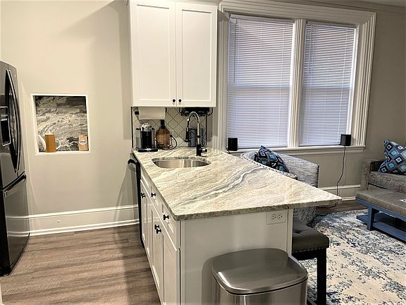 Beautiful First Floor Rear Two Bedroom Apartment in the Heart of Lancaster! This Apartment is Updated with Modern Accents, Gorgeous Original Tile Bath, Kitchen features White Cabinetry with Granite Tops, Tile Backsplash, a Large Granite Island, and Stainless Steel Appliances. Apartment is partially furnished including 2 Bedroom Sets, Couch & TV. There is an Oversized 1-Car Garage for parking. Coin Op Laundry in Lower Basement. Apartment includes Awesome Rear Patio with Granite Bar Tops for Entertaining/Convenience.