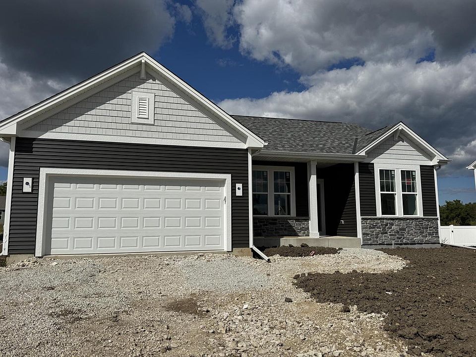 Welcome home to The Ashland by Stepping Stone Homes, an award-winning home builder. Open floor plan features 3 Beds, 2 Baths and a 2 Car garage. This lot is a flat exposure. The kitchen comes w/ quartz countertops, island and LG appliances. LVP flooring in kitchen, dinette, and great room. You will find quality craftsmanship throughout such as 2x6 construction exterior walls, 9' first floor ceilings, and passive radon system. We offer a total Kohler/Sterling home experience. The Focus on Energy program provides each home with a Certified Energy-Efficient Certificate stating that our homes are more energy efficient than current WI code.