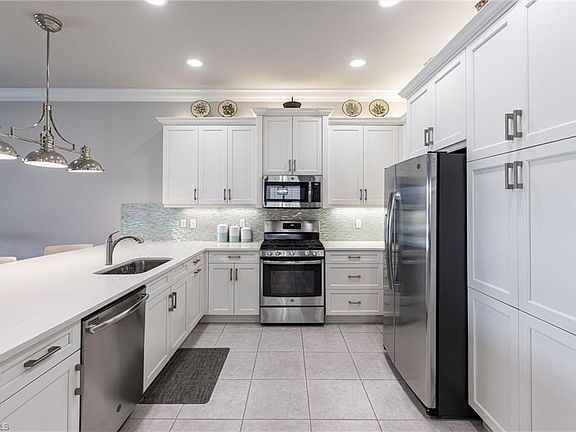 Beautifully upgraded 3-bedroom + den, 2.5-bath home with southern exposure and serene lake views. Elegant features include plantation shutters, crown molding, and a spa-like primary bathroom. Enjoy peace of mind with full hurricane protection, including a whole-house generator, lanai hurricane screen, impact windows, and shutters. Also, the home has a new tankless water heater. The spacious outdoor area is perfect for entertaining, with a covered patio, outdoor kitchen, and sparkling pool and spa. Located in a gated North Naples community with resort-style amenities: resort and lap pools, spa, tennis, pickleball, fitness center, splash pool, and more.