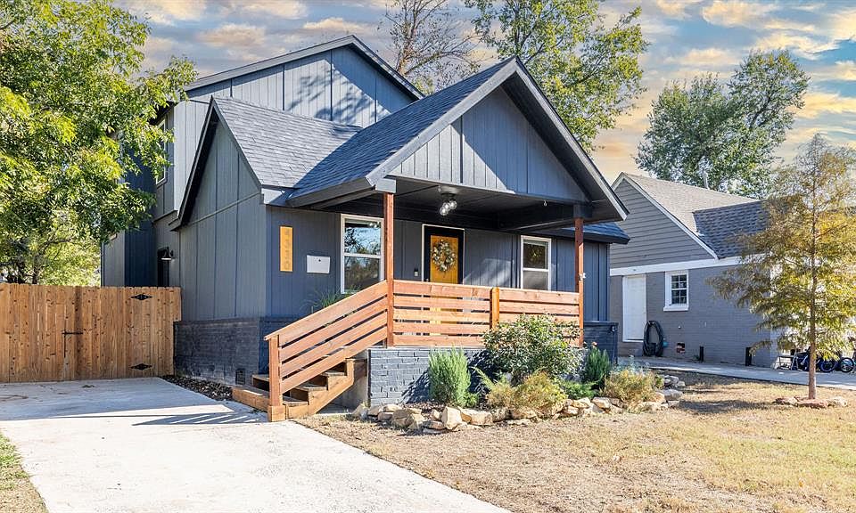 The open concept layout features a bright living area that flows seamlessly into a stylish kitchen and dining space perfect for entertaining. Neutral tones, sleek finishes, and contemporary lighting make this home feel warm and inviting. Upstairs includes a dedicated study or bonus room ideal for a home office or playroom. The exterior boasts charming curb appeal with updated paint, wood accents, and a covered front porch. The spacious backyard includes a large storage shed for added convenience. Located minutes from downtown OKC, dining, and shopping, this home offers the feel of new construction in an established neighborhood.