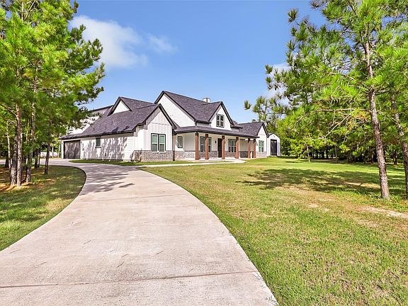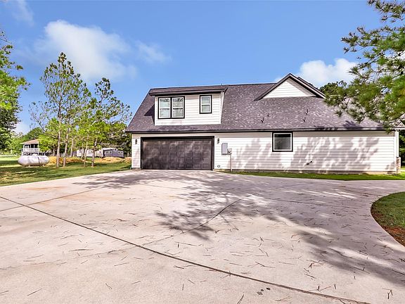 Charming 4/5-bedroom home with a pool that will be installed before closing. The rendering shows what the pool will be. The 2024 custom home is on Peach Creek Plantation neighborhood lake that can be enjoyed from your spacious back porch with plumbing for an outdoor kitchen. Large front porch entry that leads to a beautiful like new construction with many decorative touches throughout. Floor plan consist of 4 bedrooms downstairs and a bonus bedroom/game room upstairs. There is also a home office downstairs. So many gorgeous custom details throughout including a mud bench area, dressers in closets, built in storage in laundry room, ship lapped walls, sliding barndoors, and a walk-in pantry with built in drawers. Primary ensuite has large walk-in closet with custom built-ins and double sinks with separate shower and soaking tub. This acreage setting is the perfect place for relaxing days in your new pool looking out to the lake.