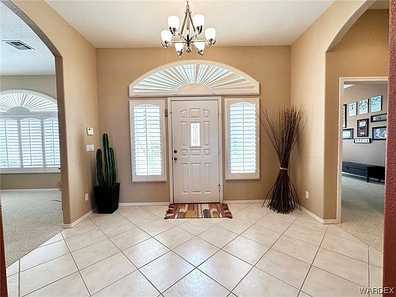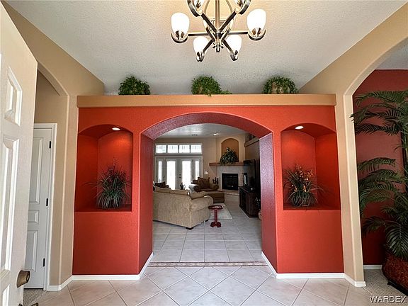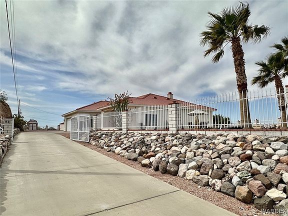 This house boasts Fantastic Views of surrounding Mountains and Casinos lights! Spacious 2610 sq ft house has a very functional floor plan with 3 large Bedrooms, 2 full Bathrooms, Family room, Formal Living room, large Game Room that can be a guest room too with a bunk-bed installed (comes with the house), attached 624 sq ft boat-deep garage. Large Windows allow lots of natural light into the house! Primary Suite is Huge with a garden tub, walk-in shower, his and hers sinks, private toilet room, large walk-in closet and a door opening into Patio in back yard. Split floor plan gives additional privacy. Kitchen has lots of cabinets and counter space and a breakfast bar. Laundry room is on the side of the kitchen on the way to garage. Half Acre Lot offers plenty of out-doors space. Beautiful Pool area with Spa (propane heated) and space to lay out to soak in that AZ Sun! Large patio and back yard for entertainment and enjoying the views! Large area on the side for your boat, RV, other toys parking. 2 storage sheds. Location is great too, minutes away from Lake Mohave with its boating, fishing, kayaking, as well as Laughlin NV with its night life entertainment and restaurants. NO HOA! By appointment only. Security system.