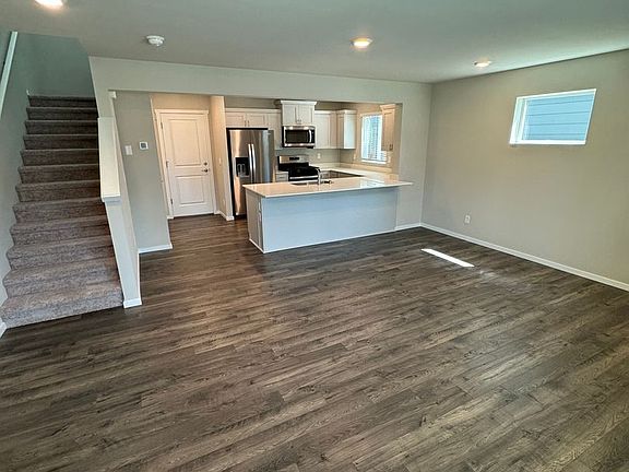 This 1 year old home welcomes you with natural lighting and an open design featuring a great room, kitchen w/ slab quartz counters, stainless appliances, gas range & light cabinets. Primary bedroom features a large walk-in closet and private bath with spacious glass shower and quartz countertops. 2 additional bedrooms at the back of the home, separated from the Primary. Central A/C and smart home features are included! Community has a playground, and open spaces.