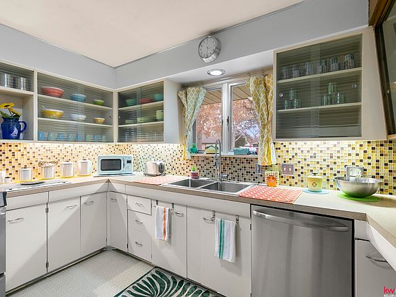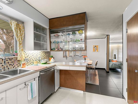 Beautifully updated yet thoughtfully preserved, this 4-bedroom, 2-bath mid-century modern ranch shines as a true one-of-a-kind gem. With 1,561 sq ft above grade, new appliances, and new porcelain tile throughout, the home blends modern comfort with unforgettable 1950s character. The main level greets you with iconic 50’s built-ins, a striking wood-burning fireplace, expansive picture windows, tasteful wallpaper accents, recessed lighting, and original fixtures that celebrate the era. All bedrooms and baths sit on the main floor with excellent storage. Off the kitchen, a convenient mudroom and secondary entry add practicality. The retro-inspired basement features a lounge, office space, gallery hall, laundry with new washer and dryer, ample storage, and a 5th non-conforming bedroom. Exterior updates—including new siding, a new back door, lush landscaping, and a sprawling corner double lot—complete this property. Schedule your showing today—this rare mid-century treasure won’t last.