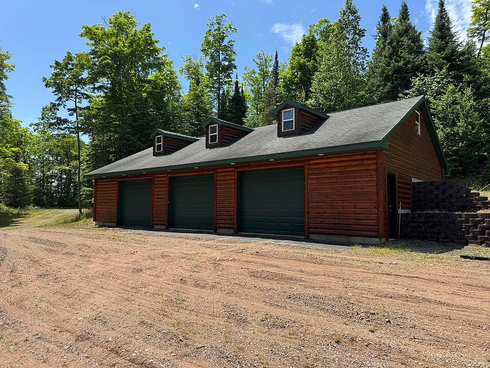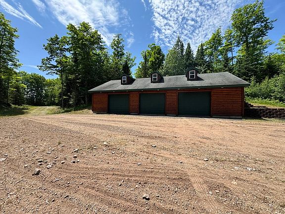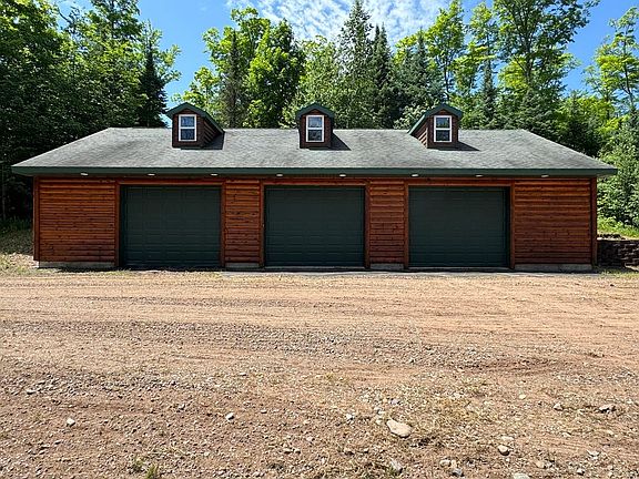 Spacious 30 x 54 garage with electricity sits on 8.51 private, wooded acres that borders County Land! The garage is neatly wrapped in hand-hewn log siding, has 3 attractive dormers, 3 overhead doors and soffit lighting. The interior is insulated, mostly sheeted with drywall, has a 3 sided poured concrete foundation, lighting, outlets and stairs to second floor storage area. Just perfect for storing all your Up North toys and is ideal for recreational use having direct access to the snowmobile, ATV & UTV trails. The property offers privacy, room to expand, excellent future development and convenient access to nearby lakes, trails and town!
