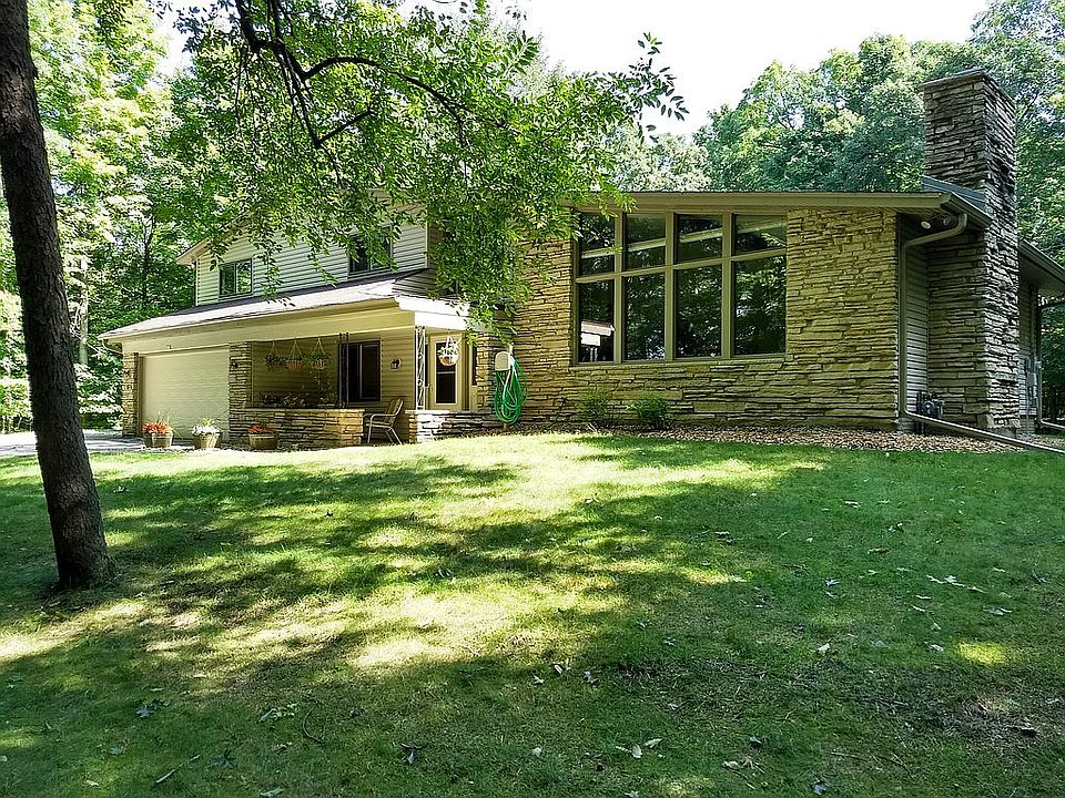 Rare northwoods-like setting within a great country neighborhood. Quality well-maintained 4 bedroom, 3 full bath contemporary home on a 4.6 acre highland hardwood forest lot for plenty of natural privacy. Open layout living/dining area with south facing window wall, vaulted ceiling. and masonry fireplace. Large eat-in kitchen. Sunken family room with attached covered patio area. Spacious bedrooms plus office/den or possible 5th bedroom on 1st floor. Also includes an attached 4-car garage. Newly added 20x20 four season sunroom addition with PTAC heating and cooling for year round use with spectacular views of the back yard woods. * Electric (200 amp main, 100 amp garage, generator panel, hot tub panel) * Heating (hydronic baseboard and zone control setup)