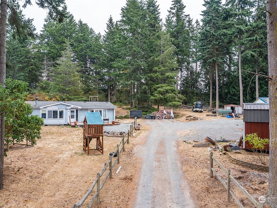 Opportunity knocks! Welcome to this spacious Marlette home on over 2 secluded acres. Plenty of room for a hobby farm, garden or just have space to play surrounded by woodland! 3 bed/2 bath home has two living areas & dining room, boasting ample space and vaulted ceilings. Large kitchen with island, good storage & prep areas. Primary bedroom has plenty of closet space & en suite bathroom has soaking tub, large walk in shower & double vanity. Utility room with deep sink & extra storage. Detached garage-presently used as a shop along with other storage buildings. Easy commute to Oak Harbor, NAS Whidbey & Deception Pass-Come and enjoy this peaceful private retreat. Welcome home!