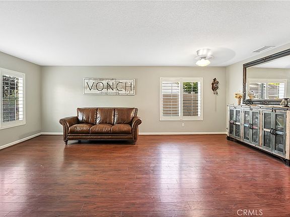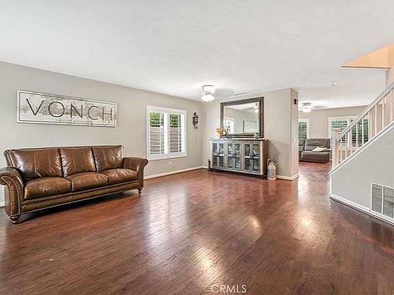 In the sought-after community of Crowne Hill, this south Temecula home features five spacious bedrooms, 2.5 bathrooms, and a three-car garage. Upgrades include luxury plank and tile flooring, granite countertops, plantation shutters, sliding barn door and fresh interior paint throiughout! The open layout seamlessly connects the kitchen to the living areas, ideal for entertaining. The kitchen is a chef's dream, equipped with upgraded stainless steel appliances, an over sized island, stylish cabinetry and walk-in pantry. The second story features five bedrooms and two full bathrooms. The expansive primary suite hosts plenty of room for an office or sitting area with gorgeous plantation shutters and a view of the backyard. The other sizeable bedrooms are just down the hall, giving a large family plenty of space! Stay comfortable year-round with a whole house fan system and new dual AC units controlled via smart touch screen panels. Relax and enjoy the backyard firepit or dine al fresco under the alumawood pergola with two brand new cieling fans. Being located in south Temecula, this home offers suburban tranquility and easy access to amenities. You are located within walking distance to Crowne Hill elemetary school and four parks. The community puts on family friendly events year round and there is always plenty to do with local movie theatres, bowling alley, campgrounds and a large shopping mall nearby! Explore picturesque landscapes, charming Old Town, and renowned wineries!