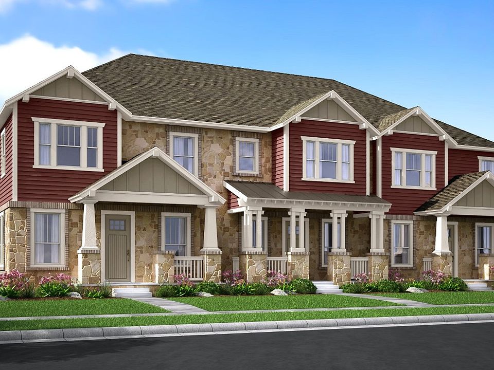 CB JENI HOMES CARSON floor plan. Great open, dramatic plan! 2 bedrooms, 2.5 baths with breathtaking 2 story living room! Living & dining open to a beautiful gourmet kitchen with custom site finished cabinets and huge chefs dream pantry. The upstairs loft gives a birds-eye view out of the second floor living window, great for a desk or reading area. Master closet is to die for! Beautiful floors grace the 1st floor…too many options to list!