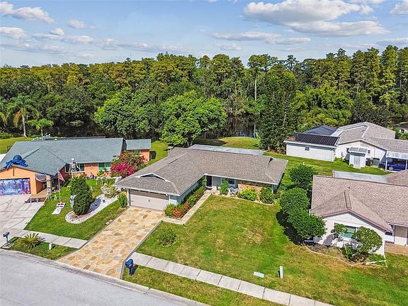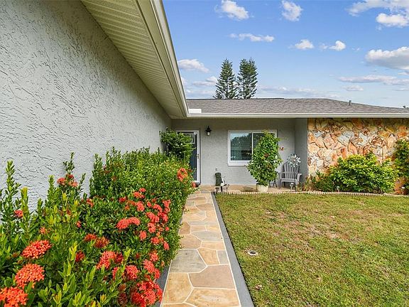 This very well maintained 2 Bedroom, 2 Bath, 2 Car Garage with a split floor plan is located on a conservation lot that features a fantastic water view of the large pond and lot. Rich hardwood flooring flows throughout the entire living area. The Kitchen has been updated with white shaker style cabinets, quartz countertops and all stainless steel appliances. The Kitchen is open to the Family Room (currently used for dining) and lends itself to entertaining family and guests. The Living Room/Dining Room Combo is open and the Dining Room features a fantastic view of the water and its backdrop. The Primary Bedroom is very spacious, features a separate vanity area, walk in closet and an En Suite Bathroom that is nicely appointed. The Second Bedroom comes with a large closet and the Second Bath has been updated and is well equipped. The Inside Laundry Room presents with newer washer and dryer and a closet for extra storage. Once outside enjoy a lovely Lanai that stretches across the back of the home and is complimented by serene views of the conservation lot and pond. The Lanai has been freshly screened and features a 1 year old - barely used private Jacuzzi to relax in at the end of the day. The home has been well maintained - New Roof in 2018, New Hurricane Windows and Sliding Glass Doors in 2019, Hurricane Shutters, New Hurricane Garage Door, and a new Glass Front Door has just recently been installed. This home is located in Park Lake Estates and is close to Restaurants, Golf Courses, Shopping, Medical Facilities , Local Beaches and so much more. Make your appointment to see this Beautiful Move In Ready Home Today!
