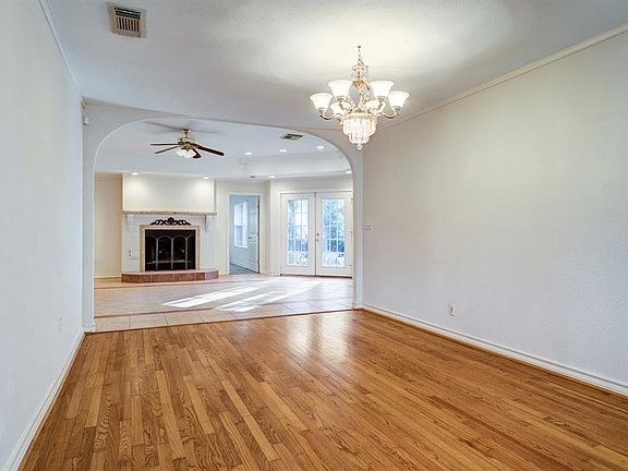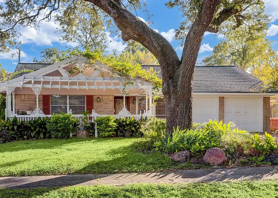 Spacious totally remodeled home w/generous room sizes & tons of extra closet space! Taken down to studs-2007. Large front porch w/Wisteria covered trellis arbor. Inviting beveled glass front door. Wonderful High ceiling in huge oversized livingrm w/gas log Fireplace & Limestone cornice. Recessed lights. Crown Molding. Round sheetrock corners! French doors to backyard w/brickpaver patio. Kitchen w/SS appliances & granite counters. 5-burner gas cooktop. SS undermount sink & brushed nickel gooseneck faucet. Breakfast bar opens to Livingrm. Lots of upper & lower cabinets. Pantry! Graceful arch & wood floors in dining area. HUGE primary bedrm w/walk-in closet & high tray ceiling & Recessed lights. Large primary bathrm w/granite counters, dbl-sinks & vanity area & linen closets. Big soaking tub w/Rainfall showerhead. Guest bathrm w/Granite counters, shower & linen closet. Raised 6-panel interior doors. Updated electrical wiring & breaker box. Insulated walls. Ceiling fans, Blinds. Roof 2021.