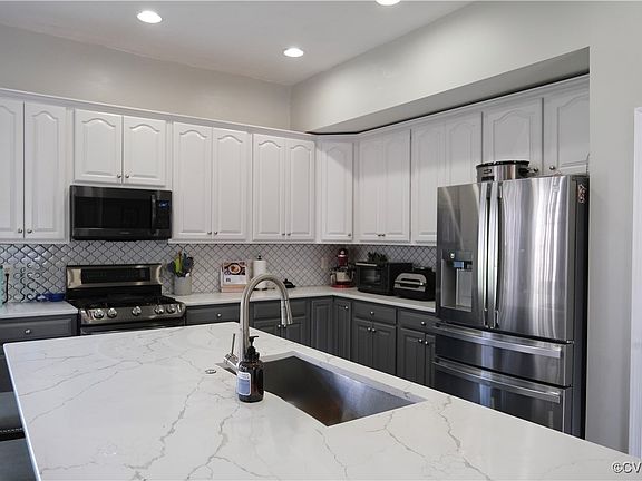 * GOURMET KITCHEN with Quartz countertops, Center island, stainless steel appliances and light filled breakfast area.