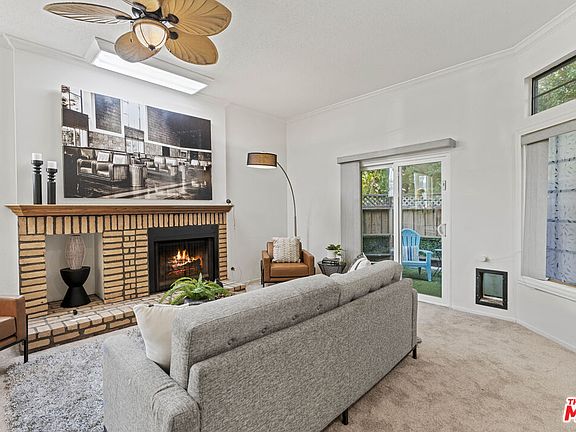 Former Celebrity owned and a rare find in the heart of Studio City: a sophisticated & upgraded tri-level townhome with a private rooftop penthouse oasis. Tucked away on the quiet, tree-lined Bloomfield Street, with a private gated entrance and a serene walkway & garden this hidden gem shares ground with only four townhouse units. This immaculate, move-in-ready home, is designed to impress. This unique "turn-key" sanctuary features comprehensive smart home automation, including automated sensor lighting, a Ring doorbell, Nest thermostat, and Lutron lighting. Upgrades like fresh paint, new carpeting, new flush ceiling lights, and beautiful crown molding are found throughout. With upgraded electrical and plumbing, plus a newer, economical HVAC system, this home ensures comfort and low utility costs. The home includes a rare low HOA fee of $300, which uniquely includes gardening, water, trash, exterior lighting, and building insurance. Step inside to a spacious, light-filled living area with soaring ceilings, a cozy wood-burning/gas fireplace, and an inviting large bay window with wide seating the perfect spot for reading or relaxing with your canine companion. The formal dining area flows seamlessly into a beautifully remodeled kitchen featuring elegant cherry wood cabinetry, gleaming granite countertops, stainless steel appliances, under cabinet lighting and a built-in ceiling sprinkler system for safety. The expansive primary master bedroom suite boasts dramatic 12-foot ceilings, a spacious walk-in closet, a custom vanity, a large tub/shower combo, and its own private shaded balcony under the trees. A second bedroom also features its own private en-suite bath. The home's pet-friendly, no-maintenance backyard features artificial turf and a convenient pet door for easy, private and safe access. The crown jewel of this home is the private rooftop penthouse and terrace. Ascend a sunlit staircaseilluminated by a stunning skylight and adorned with a one-of-a-kind mural painted by the home's owner, an accomplished filmmaker. Discover a fully enclosed sunroom with its own heating, AC, and a solar fanideal for a bright home office, yoga studio, or entertainment lounge in the sky. This spectacular retreat offers panoramic 360-degree views of Studio City from an expansive deck with intricate stamped concrete. Also included is a 15' x 8' storage space. Located within walking distance of The Shops at Sportsman's Lodge, Harvard Westlake, and the major studios.