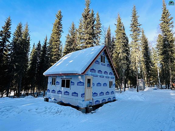 Complete the dream!!! This brand new, still under construction cabin with loft presents a rare opportunity. The heavy lifting has been done by the current owners, but life dictates a change in course for them, leaving a perfect opportunity and blank canvass for the next owner to finish the dream to their taste and desire. Located on 5 acres of peaceful, natural surroundings this approximately 700 square foot cabin with loft is fully framed in with windows, door and finished roof. *See accompanying Construction Details list that is posted to additional documents for details on structure and foundation.* Power pole and driveway are already in and there is currently a small structure that could be used for secure storage of tools and supplies while completing that dream home. With the proper clearing the new owner could create a view of the surrounding hills. Great private location and a short walk down the road takes you to the areas extensive trail system with access to the Tanana river. The main cabin should be considered an active construction site. Take appropriate precautions when entering the structure. The safety and sanitation condition of the older structure being used for storage is unknown. Enter at your own risk. Square footage figures listed are estimates.