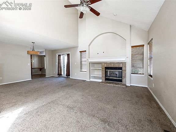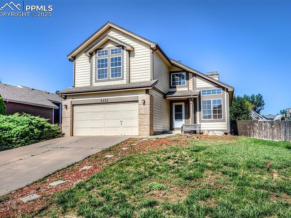 Spacious 2-story home offering 4 bedrooms, 3.5 baths, and over 2,600 sq ft of living space with a finished basement and 2-car garage. Step inside to a welcoming bonus room that flows into the bright living room featuring soaring vaulted ceilings, large windows, built-in shelving, and a cozy gas fireplace. The open kitchen impresses with granite counters, stainless appliances, pantry closet, and plenty of wood cabinetry, along with an eat-in area. French doors off the dining room lead to a fenced backyard with patio, grass area, trampoline, and playset that stay with the home. There is a convenient half bath on the main. Upstairs, the expansive primary suite features vaulted ceilings, a walk-in closet, and attached bath with double sinks, skylight, and soaking tub/shower combo. Two additional bedrooms and a full bath complete the upper level. Convenient laundry closet is also upstairs. The finished basement offers a large family room with a dry bar, updated full bath, and a 4th bedroom with egress window. Additional features include central A/C, water heater replaced in 2020, security system sensors, and solar panels. This home provides plenty of room to spread out with multiple living areas, updates throughout, and a great backyard for entertaining. Convenient location with easy commute to all military installations.