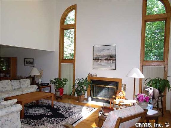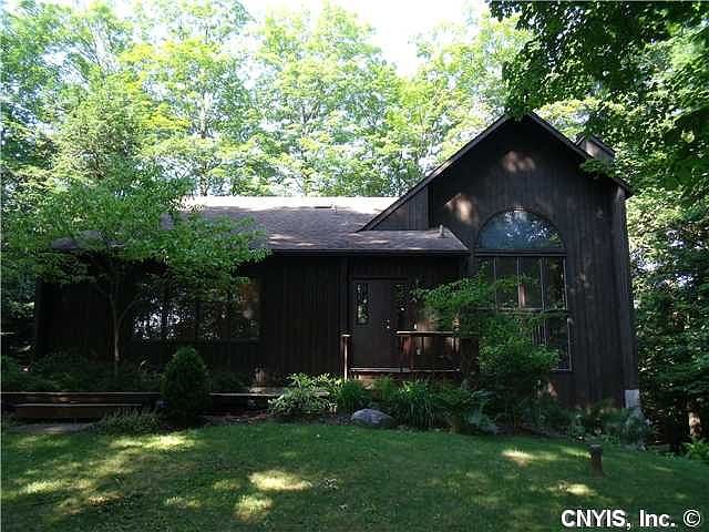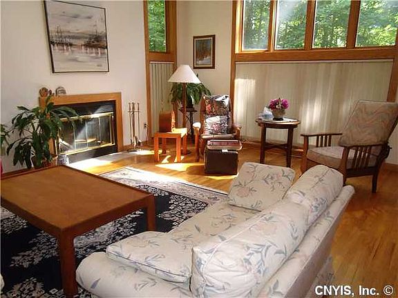 Adirondack setting in Pompey Pines for contemporary home offering 4 bedrooms plus nursery or office off master bedroom. Beautiful, natural landscaping includes tiny ponds to sit and reflect. Second floor has 3 bedrooms plus a 4th room connected to master bd via closet which ideally is nursery or office making a master suite. Mstr bath offers whirlpool tub plus separate shower. The main floor is light and open. The finished walkout lower level includes family room, bedroom and full bath as well as storage. Delight in the privacy of this well kept home!