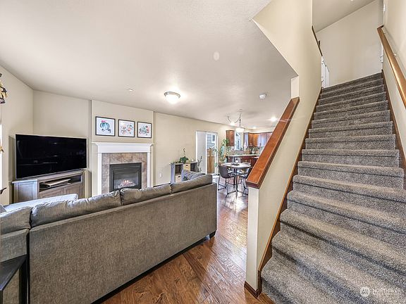 Perfectly situated and well maintained home overlooking a greenbelt. Private fully fenced backyard with decks wrapping around and accessible off living room and mudroom. Plenty of room for a BBQ, container gardening and more! One car garage with a 240 outlet for EV. Great layout with open concept kitchen, dining and living room with a cozy gas fireplace. Upgraded stainless appliances, generous pantry, half bath and mudroom on the main. All bedrooms upstairs. Generous primary bedroom with ensuite and walk in closet. 2 more good sized bedrooms with lots of natural light and a guest bath. Large landing at the top of stairs offers great flex space. Convenient location for shopping, WCC and more. Trails and parks right out the front door!