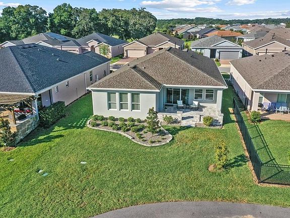 Meticulously maintained home with curb appeal and better than new! This 2023 Shea-built Connect model in the desirable Ocala Preserve offers modern, single-level living with 1,862 sq ft, 3 bedrooms, 2 bathrooms, and a versatile den/office flex space. Designed with an open concept for today’s lifestyle, the light-filled great room features soaring tray ceilings and flows seamlessly into the chef’s kitchen, complete with an expansive granite island, elegant soft-close cabinetry, stainless steel appliances that feature a gas slide-in range—perfect for entertaining. The spacious primary suite is a true retreat with a large walk-in closet and a spa-like ensuite boasting dual sinks and a glass-enclosed shower. Additional highlights include a laundry room with utility sink, upgraded lighting, and thoughtful finishes throughout. Step outside to enjoy professionally hardscaped front and backyards, with landscaped plantings framed by stone edging, and a large, extended hardscaped lanai ideal for entertaining or relaxing. Situated on a premium lot with no homes directly behind, this property offers a lush green view and a walking path around the common area for serene strolls. Ocala Preserve is a gated 55+ lifestyle community featuring resort-style amenities, golf, clubhouse, dining, pools, pickleball and tennis courts, fitness center, and miles of trails—all just minutes to the World Equestrian Center.