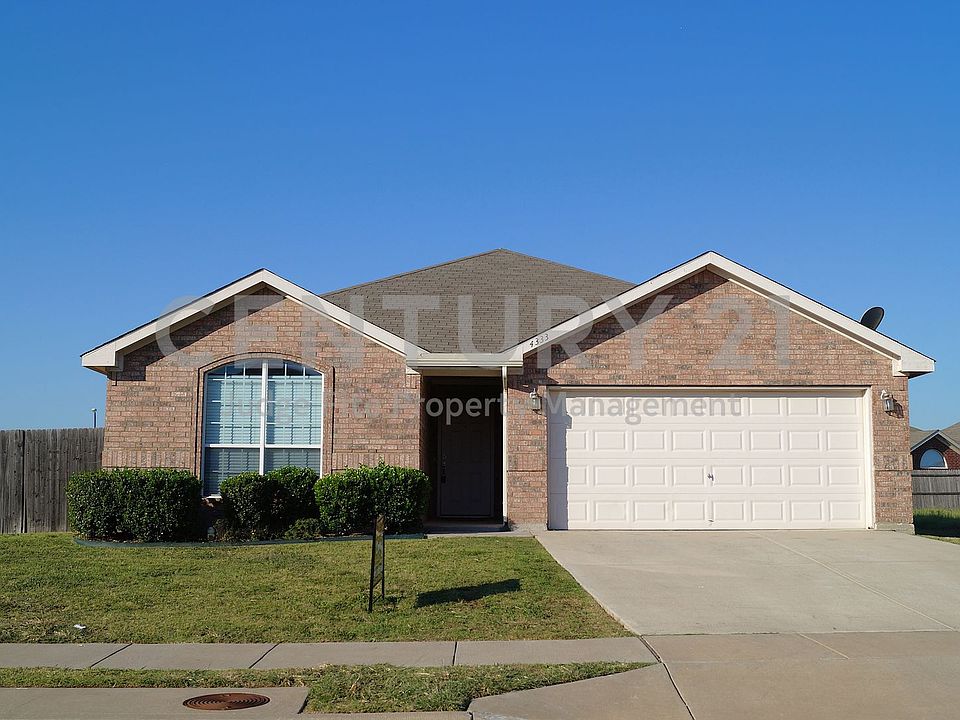Well maintained 4/2/2 home nestled on corner lot in Eagle Mt-Saginaw ISD! Nice open floor plan with neutral tones throughout. Large living area features a WBFP. Kitchen offers plenty of cabinet and counter space along with a built-in microwave, dishwasher, disposal, stove, and breakfast bar. Split bedrooms, walk-in closets, sprinkler system, full size utility area, fenced backyard with covered patio and much more! Owner must approve all pets. Owner maintains lawn.